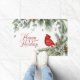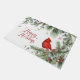 Linda vegetação natalícia, incluindo galhos de pínus e cones de pínus e cardeal vermelho vívido. Com as palavras Felizes Feriados - há também uma versão com Feliz Natal.