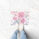 This doormat features pink watercolor flowers.