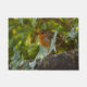 Um pisco de peito vermelho europeu (rubecula do Erithacus) que está em uma cerca de madeira em um jardim.
