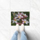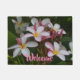 Tapete Plumera cor-de-rosa e branco com boa vinda