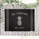 Bem-vindos convidados para a sua casa com esta encantadora casa rustica. O design personalizado apresenta o nome da sua família ou o nome da fazenda em caracteres neutros que não a letra, juntamente com o seu ano estabelecido e uma ilustração do abacaxi. A faixa de cordas detalhando sobre um fundo preto rico completa a design.