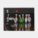 Uma porta com foto de pinos de boliche.