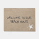 Beach House Doormat com imagem de estrela e fundo de textura de areia.