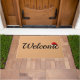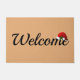 A porta de boas-vindas é mostrada em um impressão de chapéu de Natal. Tan de cor Personalize este tapete ou comprar como está.