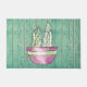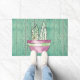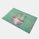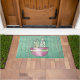 Pavimento de madeira azul, em relevo, com cacto alto em altura. Arte digital com aquarela