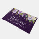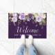 tipografia de boas-vindas com nome de família e aquarela, púrpura e pêssego. Você pode editar as cores e o texto neste tapete