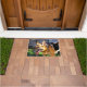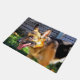Este tapete de porta tem uma fotografia de um German shepherd.