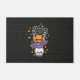 Porta com um design de sanduíche fofo de crânio, morcego, abóbora e aranha.