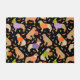 Ouro de Halloween Cães de varejo com casacos escuros e leves seguram abóboras de truque ou tratam, chapéus de bruxa vistas e suéteres com morcegos dispersos, patas e ossos de cães.