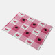 Como homenagem às saborosas guloseimas do verão, este clássico padrão de toalha de piquenique é adornada com uma fatia de melancia cercada por formigas e sementes nos quadrados brancos e uma grelha de chaleira moldada por bifes, cogumelos e peças de carvão na outra.