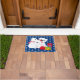 Porta mostrada com uma cor azul de fundo com um impressão de urso polar festivo de Natal giro. Personalize este tapete ou comprar como está.