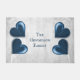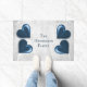 Adicione um toque elegante à sua porta com um tapete de porta personalizada de coração azul. Design de porta apresenta um par de corações, uma vinha branca e macia contra um fundo de cinza de luz com uma área para personalizar com o seu nome. Itens de presentes adicionais disponíveis com este design, bem como uma variedade de cores.