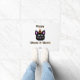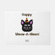 Vocês podem apreciar meu desenho de Halloween de um gato preto vestindo um chapéu de Halloween que é laranja e preto, esse gato preto está pronto para o Halloween, eu chamo esse desenho, "Black Cat Meow-A-Ween", com o texto que diz, "Happy Meow-A-Ween! Adicionado a este tapete de porta, esta porta faz o presente perfeito de Halloween.