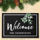 Bem-vindos à sua família e amigos neste Natal com esta porta festiva. É decorado com água embebida em fundo preto. Facilmente personalizável. Use a Ferramenta Design para alterar o tamanho, o estilo ou a cor do texto. À medida que criamos a nossa trabalho de arte, não encontraremos estas imagens exatas de outros designers. Original Watercolor © Michele Davies.