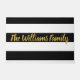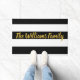 Avise seus visitantes que chegaram na casa certa. Você pode adicionar o nome da sua família ou uma mensagem em um script faux gold. O fundo é listras brancas e pretas.