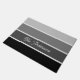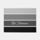 Esta moda apresenta quatro faixas em diferentes gradientes ombre de preto, carvão e cinzas, e seu nome ou monograma na tipografia para um olhar moderno.