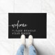 Este tapete de porta apresenta um fundo preto moderno com uma combinação de fontes minimalista. É a adição perfeita ao dentro ou fora de sua casa para informar os convidados da sua política de não-calçado. :)