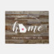 Mostre algum orgulho do estado de origem com esta fofinha porta de prancha de madeira rusticada apresentando "casa" em letras de escrita em branco com um mapa da silhueta do estado da Geórgia, em pé para a letra "O". Um dentro cor-de-rosa para ilustração cardíaca no mapa do estado completa o design; você pode mudar a posição do coração para sua cidade natal abrindo a ferramenta design e arrastando a forma do coração para seu lugar favorito. Personalize com sua cidade natal, seu nome familiar e ano estabelecidos para criar um toque perfeito para sua porta dianteira, ou um presente memorável de inauguração de casa.