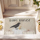 Uma porta rustica com abóboras brancas, corvo e texto "Feliz Colheita". Perfeito para porcos de fazenda, decoração de outono e reuniões de Ação de Graças. Um design aconchegante e neutro que funciona durante toda a estação.