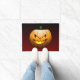 Pumpkin assustador do Halloween em uma porta.