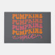 O design de "Pumpkins Spice" é uma representação divertida e vibrante do amado sabor de queda, picada de abóbora. O design apresenta de forma destacada a palavra "PUMPKINS" repetida cinco vezes em uma fonte em negrito, em estilo retrô, com bordas arredondadas, cada instância empilhada sobre a outra. A repetição enfatiza a palavra e torna a design instantaneamente reconhecível como uma celebração de todas as coisas abóbora.