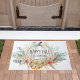 Bem-vindos a sua casa com esta porta costeira de outono, com uma abóbora de aquarela rodeada por estrelas e conchas de areia, coral, palma e eucalipto verde em uma paleta de cor de outono, em tons de terra. A mensagem de boas-vindas (mostrada aqui com Feliz outono) e a segunda linha de texto podem ser personalizadas.