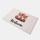 Bem-vinda à porta com uma imagem adorável de 2 raposas vestindo óculos de coração agudos de rosa. Decorado com sotaques cardíacos.