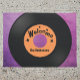 O retro vinil grava uma porta de boas-vindas como o nome do disco ou álbum e seu nome personalizado como a banda ou artista. Tema de amantes de música curiosos e exclusivos com fonte de vintagem retrorativa e fundo roxo.