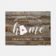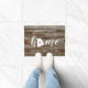 Mostre algum orgulho do estado doméstico com este bonitinho tapado tapete de madeira em prancha rústico apresentando "casa" em letras de escrita branca com um mapa da silhueta do estado de Rhode Island em pé para a letra "O". Um dentro cor-de-rosa para ilustração cardíaca no mapa do estado completa o design; você pode mudar a posição do coração para sua cidade natal abrindo a ferramenta design e arrastando a forma do coração para seu lugar favorito. Personalize com sua cidade natal, seu nome familiar e ano estabelecidos para criar um toque perfeito para sua porta dianteira, ou um presente memorável de inauguração de casa.