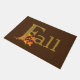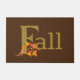 design de outono bonito / Outono apresenta a letra maiúscula "F" com preenchimento de xadrez ouro castanho/castanho e uma camada de folhas de cor laranja cor de água cor de laranja, sobre fundo castanho escuro