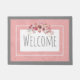 Dê boas-vindas a seus convidados com um doormat cor-de-rosa e cinzento fresco. O texto "boa vinda" é ajustado nas cinzas em um fundo branco. O texto é moldado dentro de uma imagem aguarela delicada de uns ganhos florais arqueados do rosa e das flores cor-de-rosa centrados acima. O doormat é moldado elegante com uma beira cinzenta.