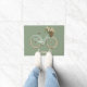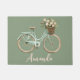 Seu nome na porta, fundo verde com a ilustração aquarela de um primavera biciclo verde e rosa