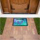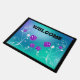 rosas de focas e roxas em uma vinha. O jardim deu as boas-vindas ao tapete da cozinha do tapete ou decoração geral. O fundo que você pode personalizar. Rosas divertidos crescendo em decor doméstico. Personalize o texto, a cor, o estilo do seu adorável jardim primavera de rosas roxas.