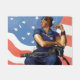 Artista: Norman Rockwell | Trabalhadora de uma fábrica de mulheres, bandeira atrás, Mein Kampf a pé