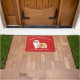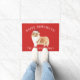 Uma porta de Natal adorável, com uma Collie tosca vestindo um chapéu de Papai Noel em um fundo vermelho festivo.