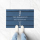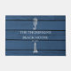 Um design rústico com fundo azul de madeira com ilustração de um cavalo marinho e de um farol. Personalize o nome da família e a data estabelecida e torne-o seu. Uma decoração perfeita em casa de praia ou presente temático costeiro para qualquer um que ama o litoral.