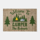 Bem-vindo à tipografia do nosso Camper com o seu nome familiar com um campista na floresta. O fundo é uma pá para uma sensação rústica.