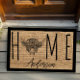 Welcome your family and friends with this rustic, country, design that features a faux burlap background, the word HOME, and your family name. The "O" in home is the shape of a longhorn cow head. Click "Personalize" to add your own name. If you need help with customization, please email me at zazzlevibes@gmail.com Thanks for stopping by www.zazzle.com/WhisperingPines.