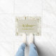 Um design de tapete de porta quente e elegante com fundo bege rústico e uma ilustração botânica macia e elegante com flores silvestres pintadas manualmente, em tons sujos de bege, verde e rosado. Bem-vinda à porta com uma tipografia moderna escrita à mão, facilmente personalizável com o seu nome de família.