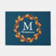 Celebrar a colheita da queda com este tapete da coroa com folhas de laranja, bolotas marrons, galhos e bagas vermelhas! Prepare sua varanda para o esplendor e o ar nítido do outono! Personalize seu monograma familiar e seu nome em script branco.
