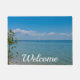 Uma porta de boas-vindas que pode ser personalizada apresentando um veleiro flutuando pelas belas águas azuis do Lago Huron na Ilha Mackinac Michigan. Procurando mais impressões ou produtos? Sinta-se livre para visitar minha loja: http://www.zazzle.com/timelessmomentsphtgy Esta foto foi tirada por Jennifer White com Fotografia Moments Eterno. Todas as imagens são protegidas por copyright © Moments Eterno Photoographic.