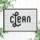 Esta porta elegante azulejo preto e branco é perfeita para a sua sala de lavanderia. Suas linhas limpas, cores simples e padrão de safra são eterno e versáteis. Este tapete inclui um azulejo de faux estilo vintage impresso que lê "limpo" em um tapete baseado em borracha que é durável.