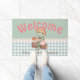 Um retrato de um conto de fadas baleado de uma sapo-rico vestindo um chapéu de cogumelo e segurando cogumelos. Cute cottagecore e pintura de animais de floresta que lembram ilustrações de livros infantis. O admirável tapete verde de gingham é personalizável e permite personalizar adicionando seu nome!