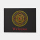 Essa mandala foi projetada para o cartaz zodíaco Scorpio, que representa uma pedra-rubi no centro cercada por elementos que representam o cartaz, como o símbolo do cartaz, a constelação e o símbolo alquímico da água, além de videiras e tecelões de árvores que a enrolam em uma imagem sólida em tons de vermelho, ouro e preto. Personalize o texto nesta porta com a sua saudação preferida ou remova-o completamente para fazer uma decoração exclusiva para a sua entrada.