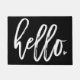 Esta adorável porta branca apresenta a palavra "olá" numa letra moderna escrita à mão, com um pequeno coração branco no final, para a quantidade certa de beleza. A cor de fundo pode ser alterada selecionando uma cor na paleta usando a ferramenta de personalização ou você pode inserir seu próprio código hexadecimal.