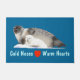 Uma mãe Ringed Seal e um filhote em um chão de gelo. A leitura de texto "Narizes frios Corações quentes" também aparece junto com um coração vermelho. Tal como acontece com os Ursos Polares que os presenciam, mamíferos marinhos como o Ringed Seal são ameaçados pelas alterações climáticas no conjunto de gelo do Árctico. Nomeado para as marcas em forma de anel em seus casacos, o Ringed Seal (Phoca hispida) é o mais abundante e abrangente selo de gelo do hemisfério norte: que vai através do Oceano Ártico, até o Mar de Bering e o Mar de Okhotsk até ao sul da costa norte do Japão no Pacífico, e através das costas do Atlântico Norte da Groenlândia e da Escandinávia até ao sul como Terra Nova, e incluir duas subespécies águas frescas na Europa norte. As focas aneladas são uma das principais presas dos ursos polares e são, desde há muito, uma componente da dieta das pessoas indígenas do Árctico. As diminuições acentuadas da abundância de vedações aneladas podem ter efeitos em cascata nas teias de comidas do Ártico. O Ringed Seal serve um indicador de mudança ecológica no Ártico, devido à sua dependência do gelo marinho anual. As juntas são. São nasceres de março-médio a abril-médio e desmamados antes do desmembramento em junho. A distribuição de Ringed Seals no mundo é mostrada abaixo: Durante o período de lactação, as focas jovens passam metade do seu tempo sobre o gelo e metade debaixo d'água, onde são caçadas por ursos polares. Para se protegerem dos predadores e criarem suas focas jovens, aneladas fazem lares de neve na superfície do gelo marinho. As camadas finas de neve são mais susceptíveis a ataques do que as camadas grossas. A abundância e a estabilidade do gelo são muito importantes para o sucesso das focas jovens. Se o gelo continuar a diminuir devido às mudanças climáticas, jovens focas serão forçadas a natação em água aberta logo cedo, fazendo com que eles expandam mais energia e sejam vulneráveis a ataques. Além disso, o gelo também é necessário para descansar, após o período de desmame, que é essencial para o seu desenvolvimento. A redução do gelo do mar devido à mudança climática pode mover as faixas das focas aneladas para o norte e afetaria suas estações de alimentação, fertilidade e sobrevivência. O gelo arrastado criado pelo aumento das temperaturas pode também subir as faixas das focas harpa e aumentar as focas encapuzadas ao largo da Groenlândia Ocidental, afetando o equilíbrio já estabelecido entre as populações nativas dessa região. O declínio nas populações de focas-aneladas também está afetando a população de seus predadores - o urso polar. Os ursos polares são quase exclusivamente caçadores de anéis, e muitas vezes matar os seus filhotes que dependem do gelo do mar para sobreviver. Além dos ursos polares, os humanos também caçam as focas aneladas há séculos. Não só constituem uma fonte de comida para a maior parte das pessoas nortes que vivem na costa, como também uma fonte de rendimento. Milhares de vedações aneladas são colhidas e comercializadas por peles anualmente pelos Inuit e outras pessoas da Bacia do Ártico. Outras Ameaças As temperaturas mais quentes dos oceanos também são mais propensas a causar um aumento de patógenos que afetam as focas aneladas. E a migração de focas aneladas para encontrar habitats mais estáveis pode aumentar a propagação desses patógenos, o que pode até levar a uma epidemia de uma doença. Além disso, à medida que as temperaturas se aquecerem, haverá mais presença humana na região do Árctico, com o transporte marítimo, a pesca, a agricultura e a extração de petróleo. Isto irá degradar ainda mais os habitats de focas aneladas e reduzir a disponibilidade da sua comida, como o peixe. Na verdade, as focas de anéis doentes e mortos começaram a aparecer em julho (2011) na costa do mar Beaufort perto de Barrow, a comunidade mais setentrional do país. As cordas foram relatadas até oeste como Point Lay e Wainwright no Mar Chukchi. Os animais afetados apresentavam lesões nas nadadeiras traseiras e dentro na boca. Alguns mostraram perda de cabelo irregular e irritação cutânea ao redor do nariz e olhos. As focas vivas foram letárgicas, permitindo que as pessoas se aproximassem. As Necropsias nas vedações das articulações do morto encontraram fluido nos pulmões, manchas brancas nos fígados e crescimento anormal nos cérebros. Sintomas, mas sem mortes, também foram observados na morsa do Pacífico. No início, pensava-se que a radiação emitida pelos reatores nucleares de Fukushima no Japão poderia ser a causa. Foi demonstrado que não é esse o caso. Doenças do sistema imunitário, fungos, biotoxinas e produzidas pelo homem, contaminantes e estressantes relacionados à mudança do gelo do mar podem ser a causa. A pesquisa combinou observações científicas com o conhecimento tradicional do Inuit canadense sobre como as baleias assassinas (Orcinus orca) no Ártico comem e se comportam. Um aumento nos territórios de caça disponíveis para as baleias assassinas no Ártico devido à mudança climática e ao derretimento do gelo do mar poderia "afetar seriamente o equilíbrio do ecossistema marinho". As baleias assassinas começaram recentemente a colonizar a Baía de Hudson. Elas são os principais predadores que afetam o comportamento das suas presas, fazendo-as fugir, mergulhar profundamente ou tentar esconder-se entre o gelo do mar. Orcas comem tudo, desde escolas de peixes pequenos até grandes baleias baleeiras, mais do dobro do seu tamanho. Pequenos mamíferos buscam refúgio em águas rasas ou na costa, e presas maiores fogem, mergulham fundo, ou tentam se esconder no gelo. Até mesmo a Narcbaleia correrá para águas rasas e esperará até as baleias desistirem.