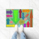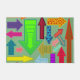 Esta porta tem um design de setas em várias cores com diferentes padrões.