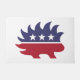 Esta design apresenta o símbolo da eleição do Partido Libertário dos EUA. O logotipo está no dominio público. O partido promove geralmente uma plataforma liberal clássica, em contraste com o liberalismo moderno do Partido Democrático e o progressista e o conservadorismo do Partido Republicano. As atuais posições de política fiscal incluem a redução de impostos, a abolição do Serviço de Receita Interna (Receita Interna), a redução da dívida nacional, permitindo que as pessoas se afastem da Segurança Social e eliminem o Estado-providência, em parte utilizando instituições de caridade privadas. As atuais posições de política cultural incluem o fim da proibição de drogas ilegais, a defesa da reforma da justiça criminal, o apoio ao casamento do mesmo sexo, o fim da pena capital e o apoio aos direitos de posse de armas. Atualmente, é o terceiro maior partido político dos Estados Unidos através do registro eleitoral. O porco-espinho é usado como símbolo do libertarismo porque é um animal defensivo que não prejudica quem o deixa sozinho.