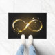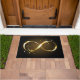 Símbolo infinito de joias Dourado com estrelas douradas sobre fundo preto. Design com estrela dourada.