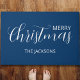 Porta de Natal Azul Elegante, simples, limpa, meia-noite com texto branco de na moda personalizado manuscrito. O azul da meia-noite, reminiscente do céu de inverno à noite, é a cor perfeita para o Natal.